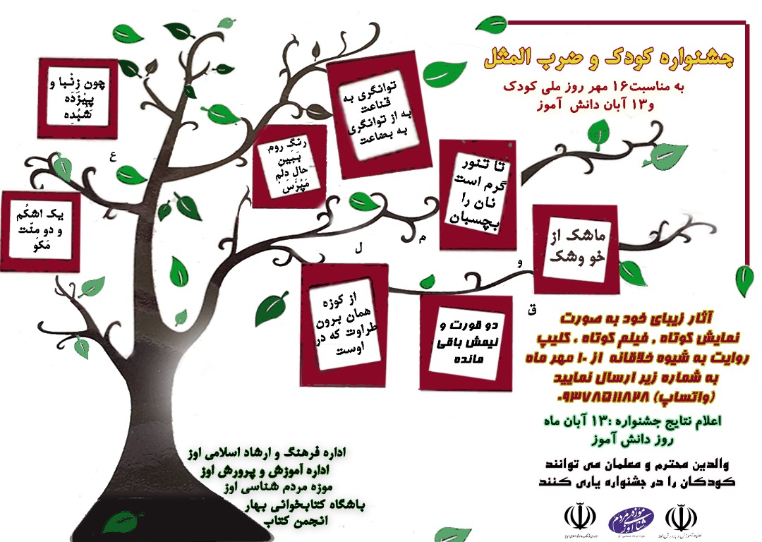 برای ارسال این ضرب المثل ها از ۱۶ مهرماه روز ملی کودک و تا ۱۳آبان ماه روز دانش آموز فرصت دارید.