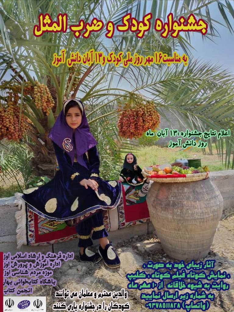 هفته ملی و روز جهانی کودک سال ۱۴۰۰ با شعار «حال خوش کودکی، رنگ خوش زندگی» در شهرستان اوز، با برنامه های متنوعی ویژه کودکان برگزار می گردد و یکی از این برنامه ها که می تواند در راستای تحقق شعار این هفته می باشد، جشنواره کودک وضرب المثل است که توسط اداره فرهنگ و ارشاد اسلامی با همکاری اداره آموزش و پرورش، موزه مردم شناسی، انجمن کتاب و باشگاه کتابخوانی بهار اوز برگزار می گردد.