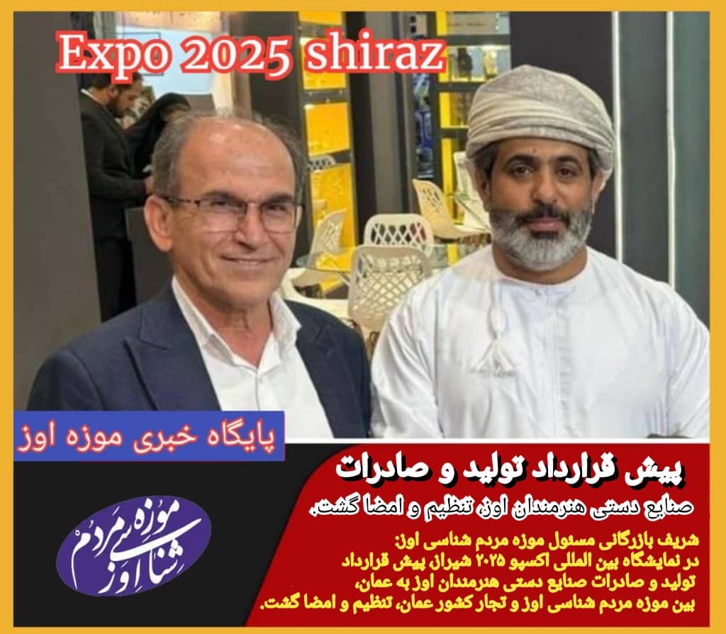 در جریان رویداد اکسپو ۲۰۲۵ شیراز، یک پیش قرارداد مابین شریف بازرگانی مسئول موزه مردم شناسی اوز و تجار عمان تنظیم و امضا گشت. این قرارداد در مورد تولید و صدور صنایع دستی جنوب ایران خصوصا شهرستان اوز می باشد. این امر باعث رونق کسب و کار تولیدکنندگان صنایع دستی شهرستان اوز و شهرستان های مجاور و رشد اقتصادی این منطقه می شود.