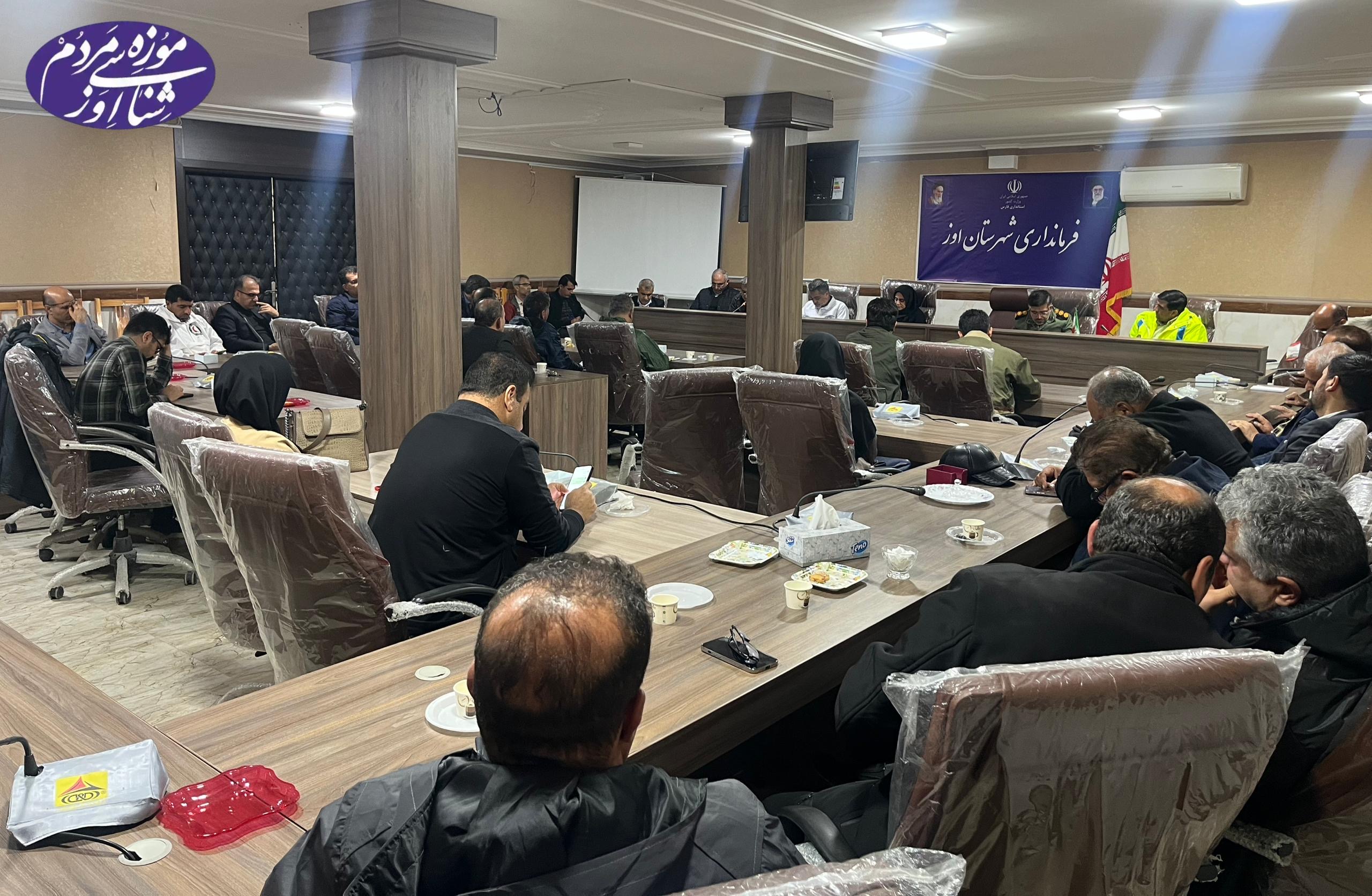 جلسه ستاد بحران سیل و آب با حضور دکتر غلامرضا غلامی مدیر کل ستاد مدیریت بحران استانداری فارس و سایر مسئولان بلندپایه استان فارس، اعضای ستاد بحران، مدیران دستگاههای اجرایی شهرستان اوز و اصحاب رسانه، عصر جمعه در فرمانداری این شهرستان برگزار شد. این جلسه با هدف بررسی وضعیت بارندگیهای اخیر، سیلابها و مشکلات ایجادشده در حوزه آبرسانی و زیرساختها تشکیل شد.